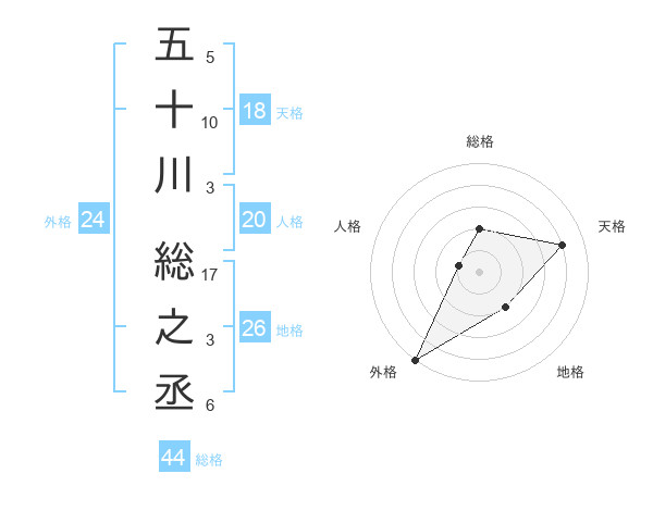 五十川 総之丞さんを姓名の画数から五運を鑑定