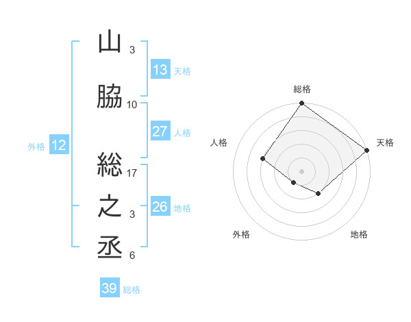 山脇 総之丞さんを姓名の画数から五運を鑑定