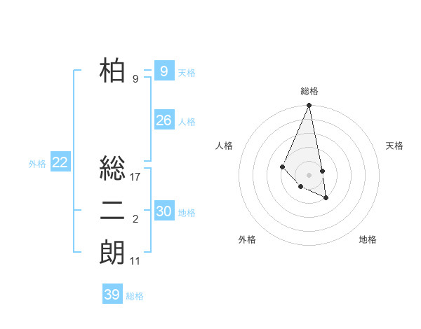 柏 総二朗さんを姓名の画数から五運を鑑定