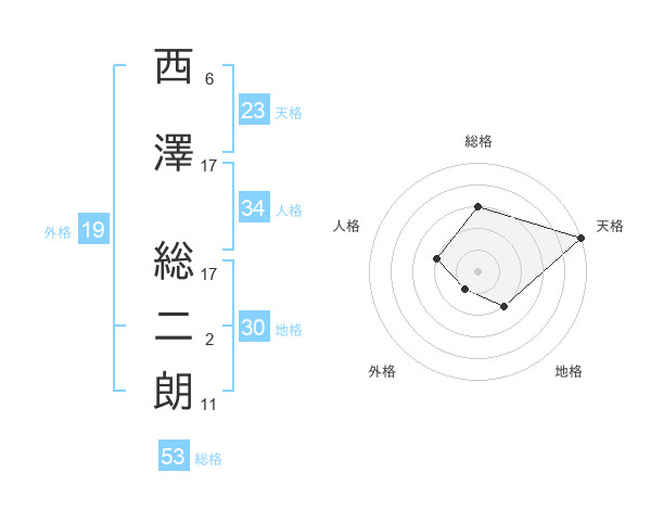 西澤 総二朗さんを姓名の画数から五運を鑑定