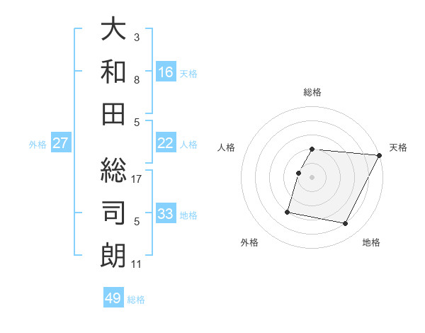 大和田 総司朗さんを姓名の画数から五運を鑑定