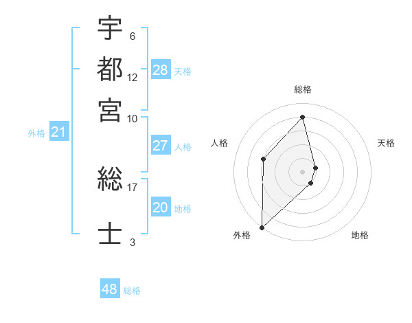 宇都宮 総士さんを姓名の画数から五運を鑑定