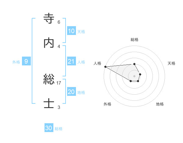 寺内 総士さんの地格は20画の1点!