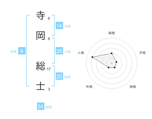 寺岡 総士さんの地格は20画の1点!