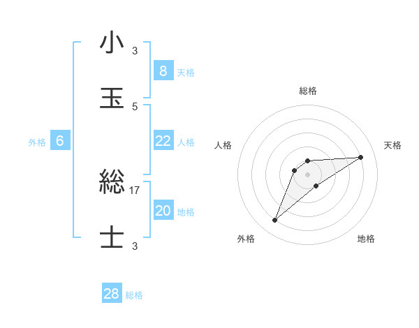 小玉 総士さんの天格は8画の4点!