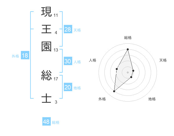 現王園 総士さんの総格は48画の4点!