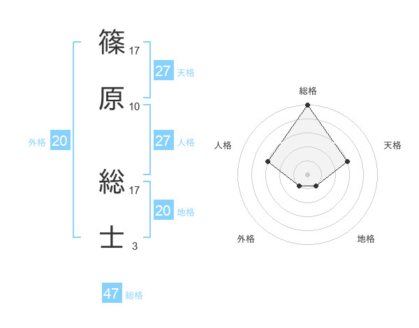 篠原 総士さんの地格は20画の1点!