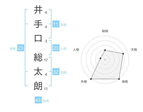 井手口 総太朗さんを姓名の画数から五運を鑑定