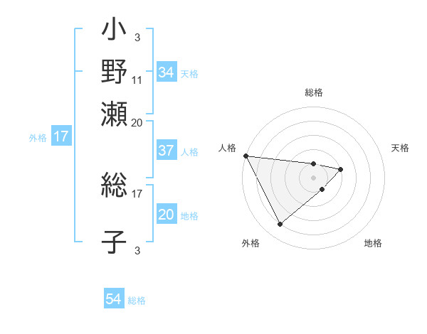 小野瀬 総子さんの外格は17画の4点!