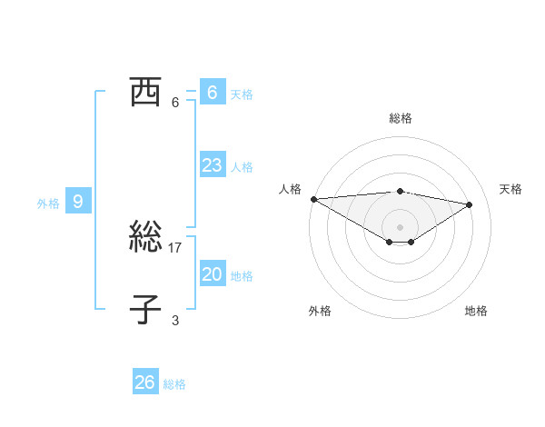 西 総子さんの天格は6画の4点!