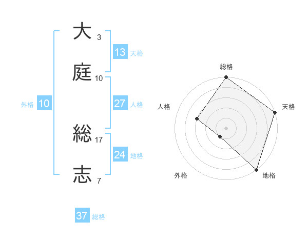 大庭 総志さんの総格は37画の5点!