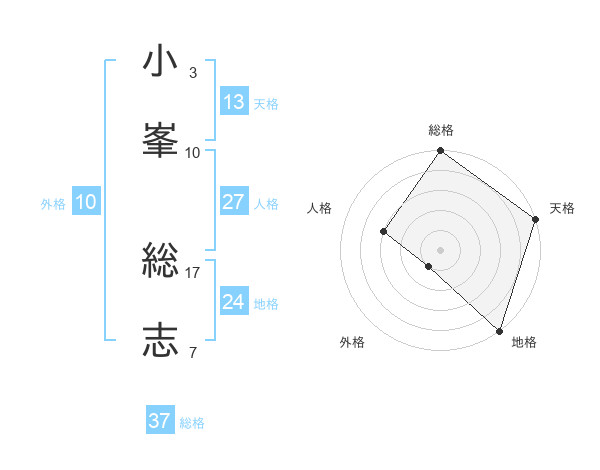小峯 総志さんの総格は37画の5点!