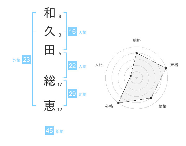 和久田 総恵さんを姓名の画数から五運を鑑定