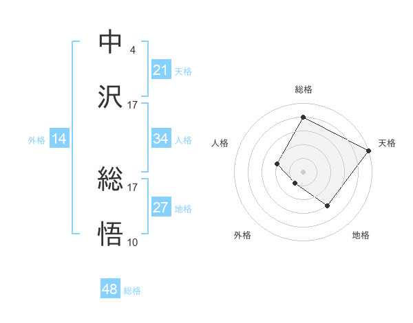 中沢 総悟さんの総格は48画の4点!