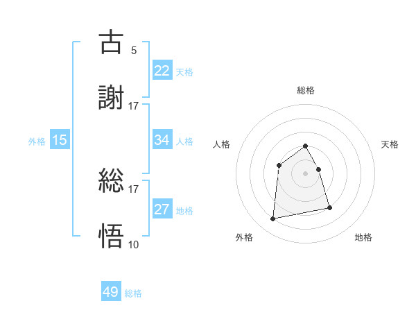 古謝 総悟さんを姓名の画数から五運を鑑定