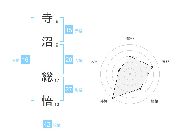 寺沼 総悟さんを姓名の画数から五運を鑑定