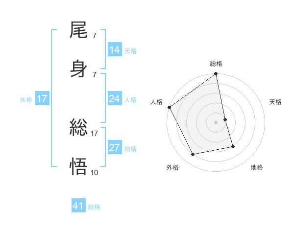 尾身 総悟さんの外格は17画の4点!