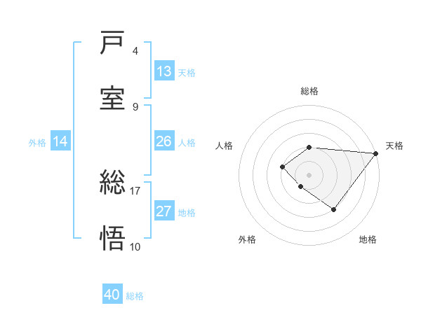 戸室 総悟さんの天格は13画の5点!