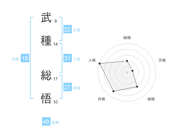 武種 総悟さんの総格は49画の2点!
