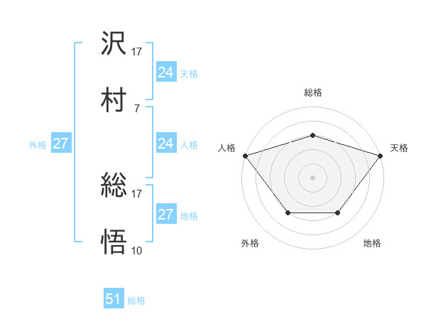 沢村 総悟さんを姓名の画数から五運を鑑定