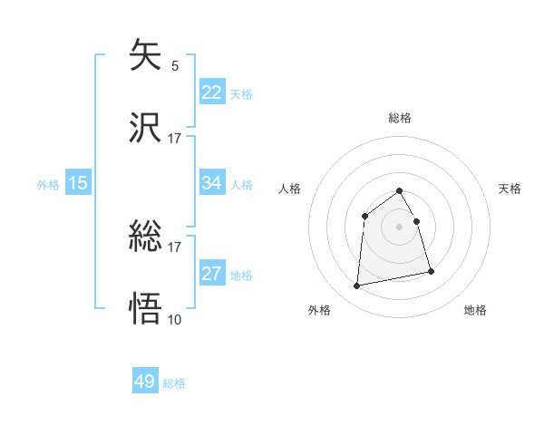 矢沢 総悟さんの天格は22画の1点!