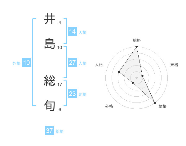 井島 総旬さんの総格は37画の5点!
