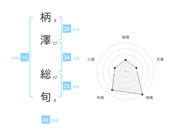 柄澤 総旬さんの地格は23画の5点!
