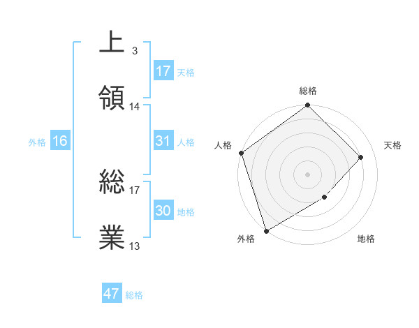 上領 総業さんの総格は47画の5点!