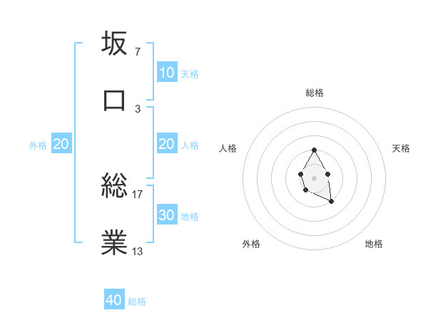坂口 総業さんの総格は40画の2点!