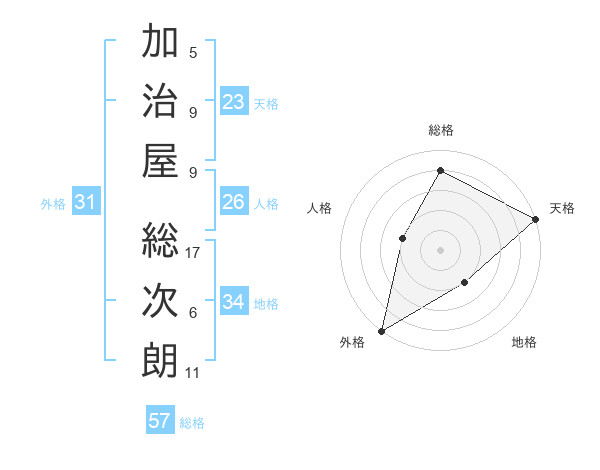 加治屋 総次朗さんを姓名の画数から五運を鑑定