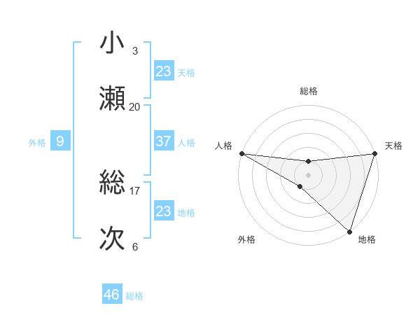 小瀬 総次さんの天格は23画の5点!