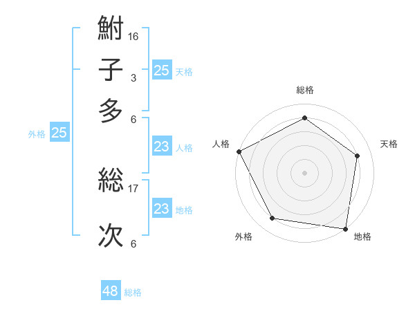 鮒子多 総次さんを姓名の画数から五運を鑑定