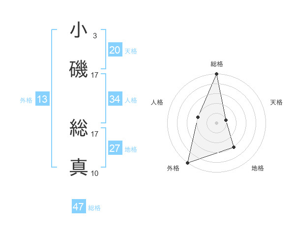 小磯 総真さんの総格は47画の5点!