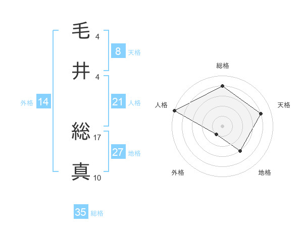 毛井 総真さんの人格は21画の5点!