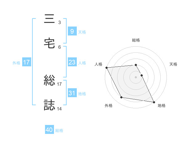 三宅 総誌さんを姓名の画数から五運を鑑定