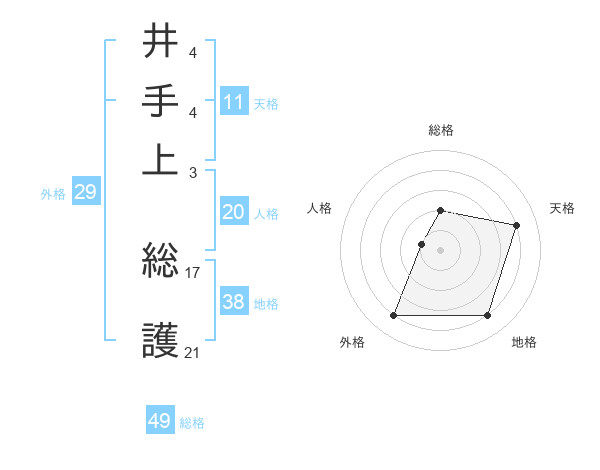 井手上 総護さんの地格は38画の4点!