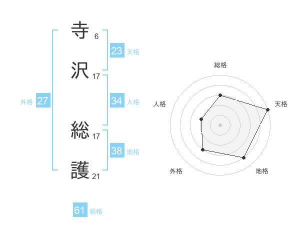 寺沢 総護さんの天格は23画の5点!