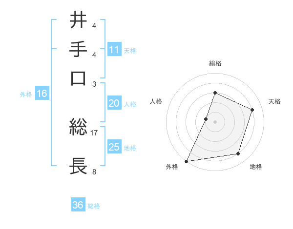井手口 総長さんの外格は16画の5点!