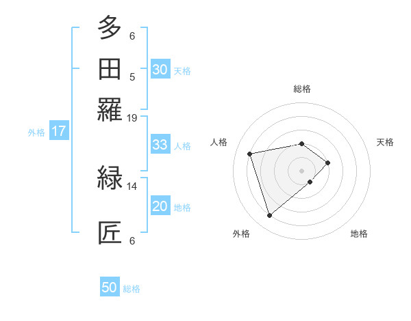 多田羅 緑匠さんを姓名の画数から五運を鑑定