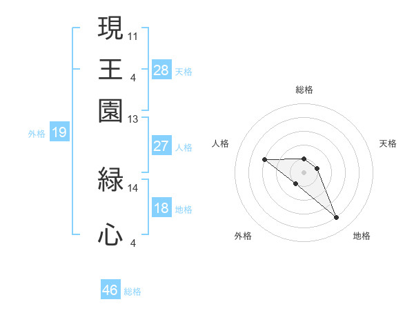 現王園 緑心さんの総格は46画の1点!