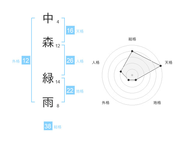 中森 緑雨さんを姓名の画数から五運を鑑定