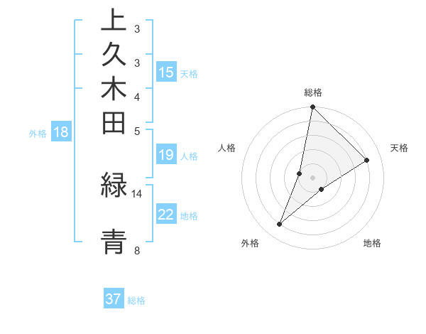 上久木田 緑青さんを姓名の画数から五運を鑑定