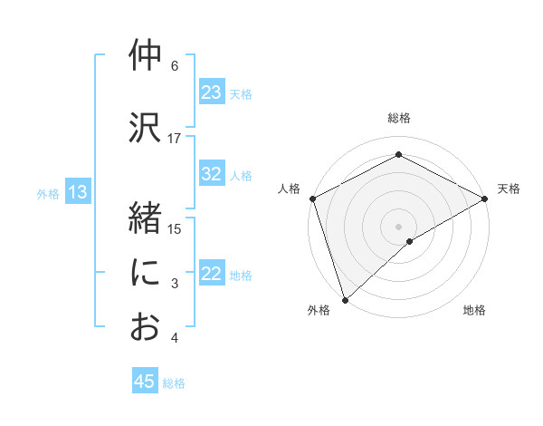 仲沢 緒におさんを姓名の画数から五運を鑑定
