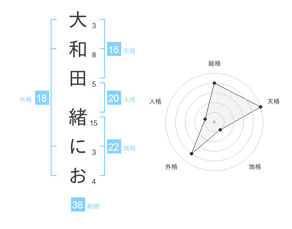 大和田 緒におさんの総格は38画の4点!
