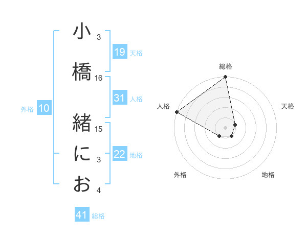 小橋 緒におさんの総格は41画の5点!
