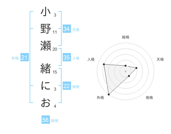 小野瀬 緒におさんを姓名の画数から五運を鑑定