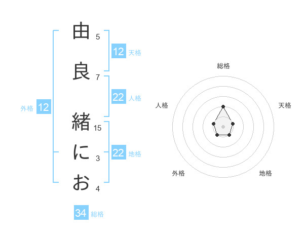 由良 緒におさんの総格は34画の2点!