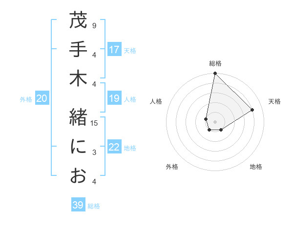 茂手木 緒におさんを姓名の画数から五運を鑑定