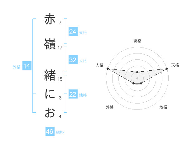 赤嶺 緒におさんの総格は46画の1点!