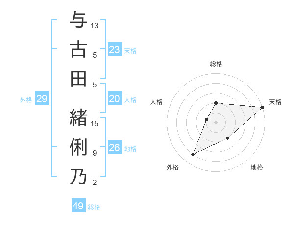 与古田 緒俐乃さんを姓名の画数から五運を鑑定